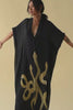 Cut from luxurious, lightweight pure silk, the Rise Kaftan in Black features a generous and fluid drape, side slits, a plunging v-neck, and an elongating maxi length. This silk kaftan is effortless luxury and powerful femininity at its finest, accented with a mystic print from our new hand-illustrated collection. Symbolic of rebirth, death, and mortality in Hindu culture, the snake adds a profound depth to this piece.