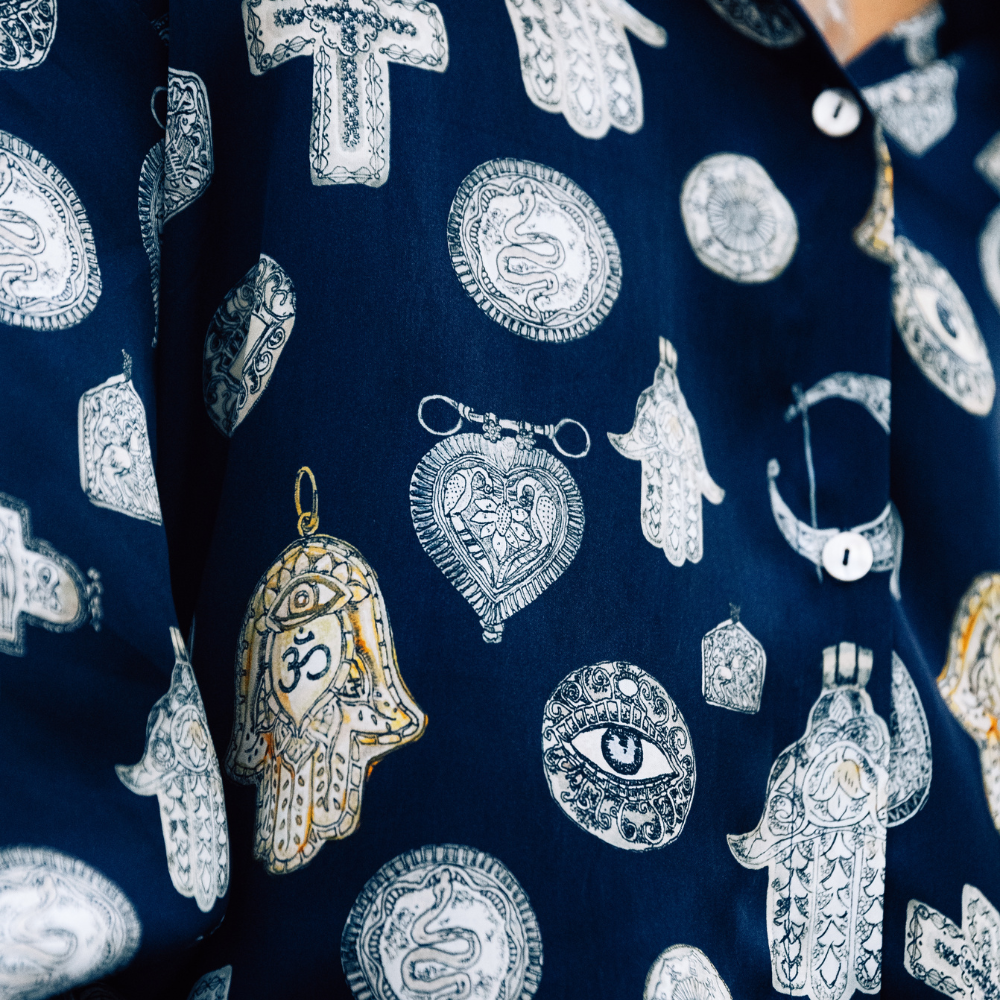 Illustrating amulets imbued with magical powers, such as the Hamsa Hand - a universal symbol of protection, power, and strength—and the Evil Eye, known for its ability to ward off evil spirits and ill intentions. These centuries-old symbols carry profound beliefs, which we wholeheartedly honour.