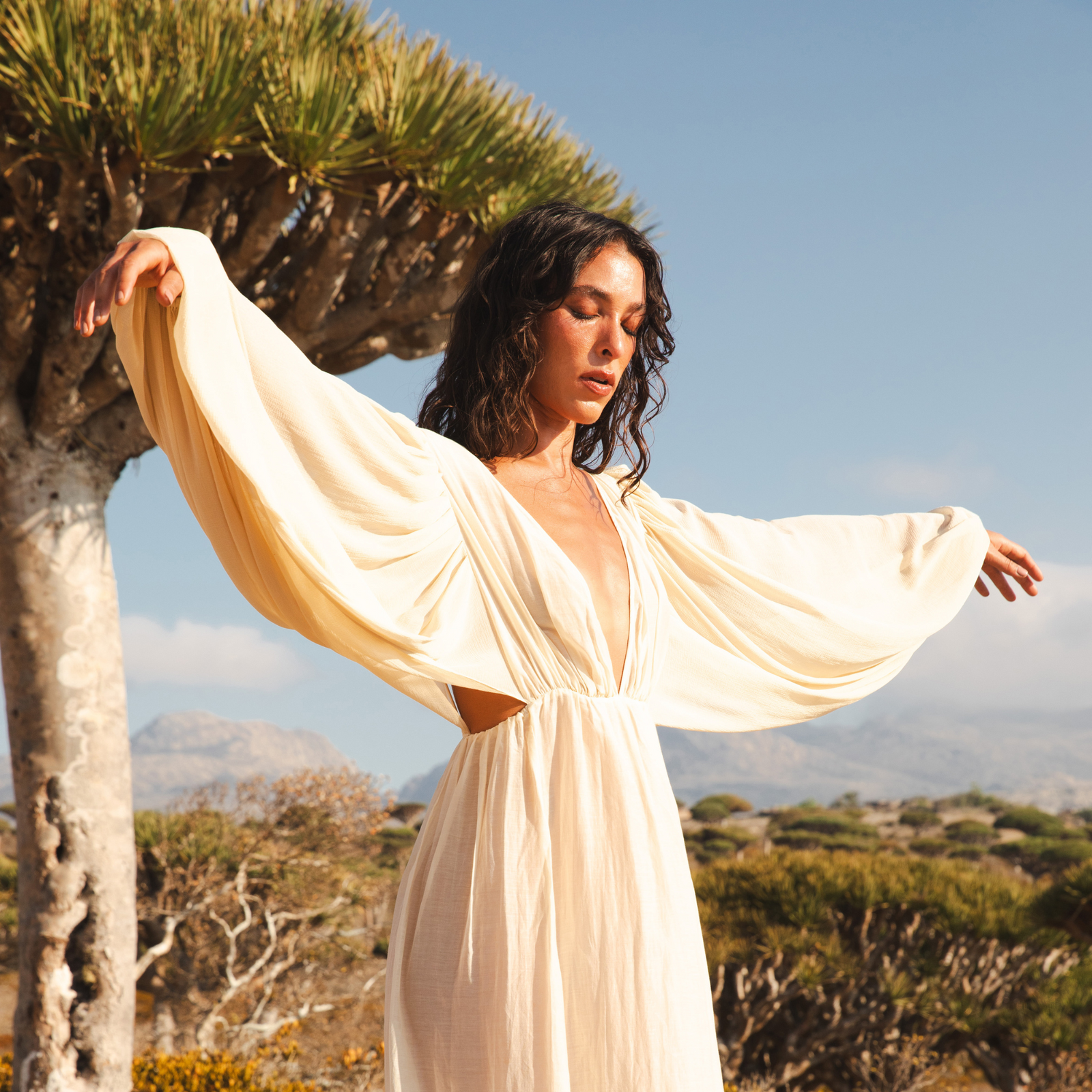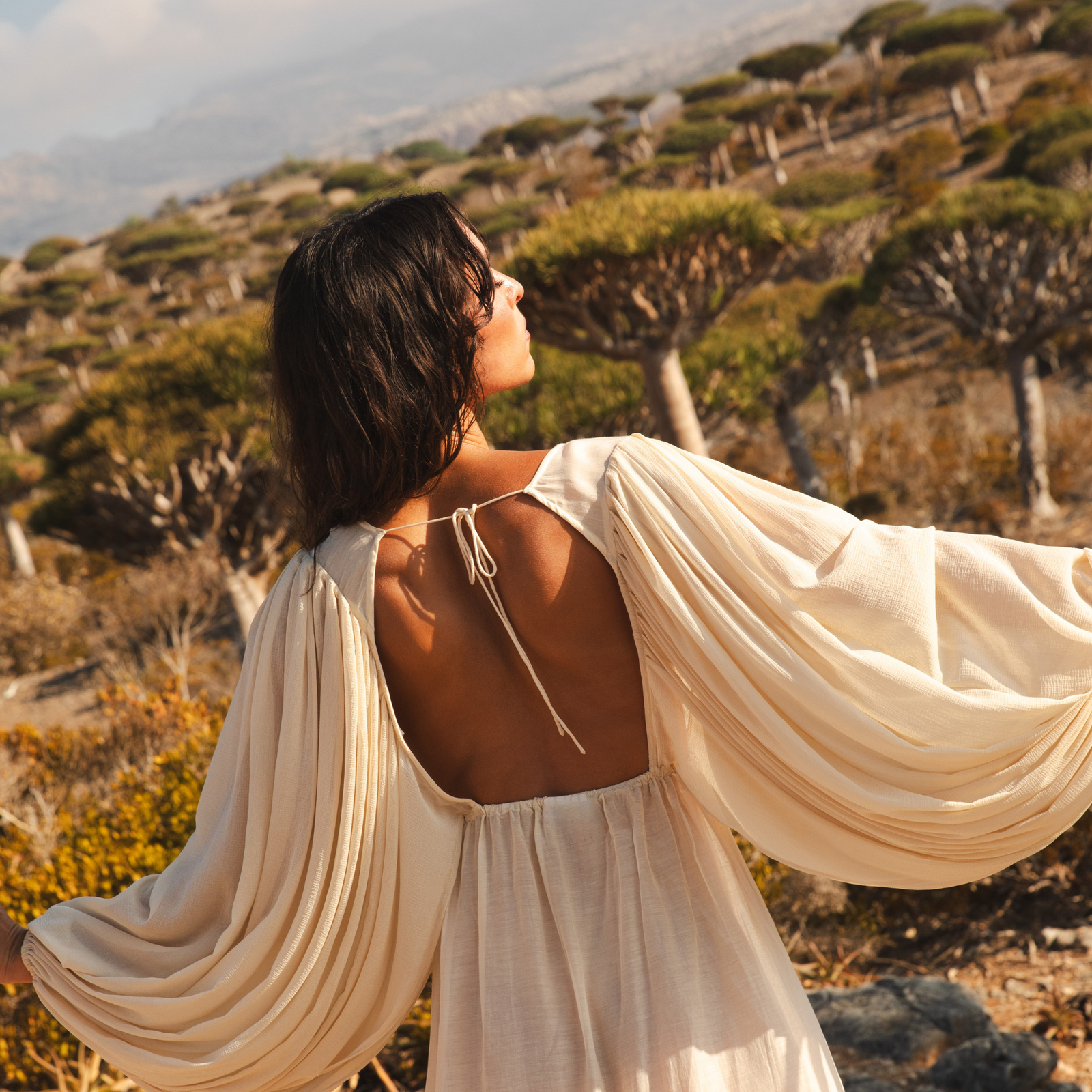 In collaboration with our muse, Arielle Spring, and photographer, Natasha Perez, we ventured into Socotra's untouched terrains to bring Nomadica to life. Each of these moments reflects the heart of Nomadica: a collection inspired by the untamed spirit of the wanderer, crafted with a commitment to sustainable fashion and designed to be timeless. We invite you to explore these pieces and let them accompany you on your own journey.