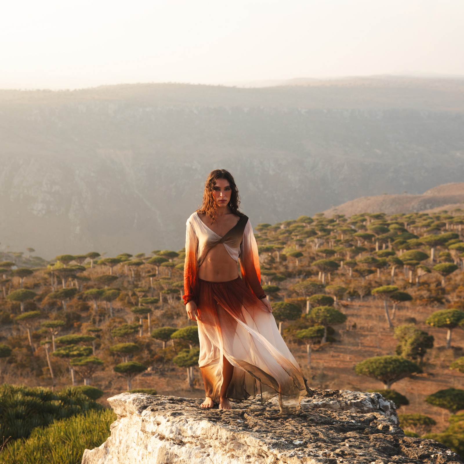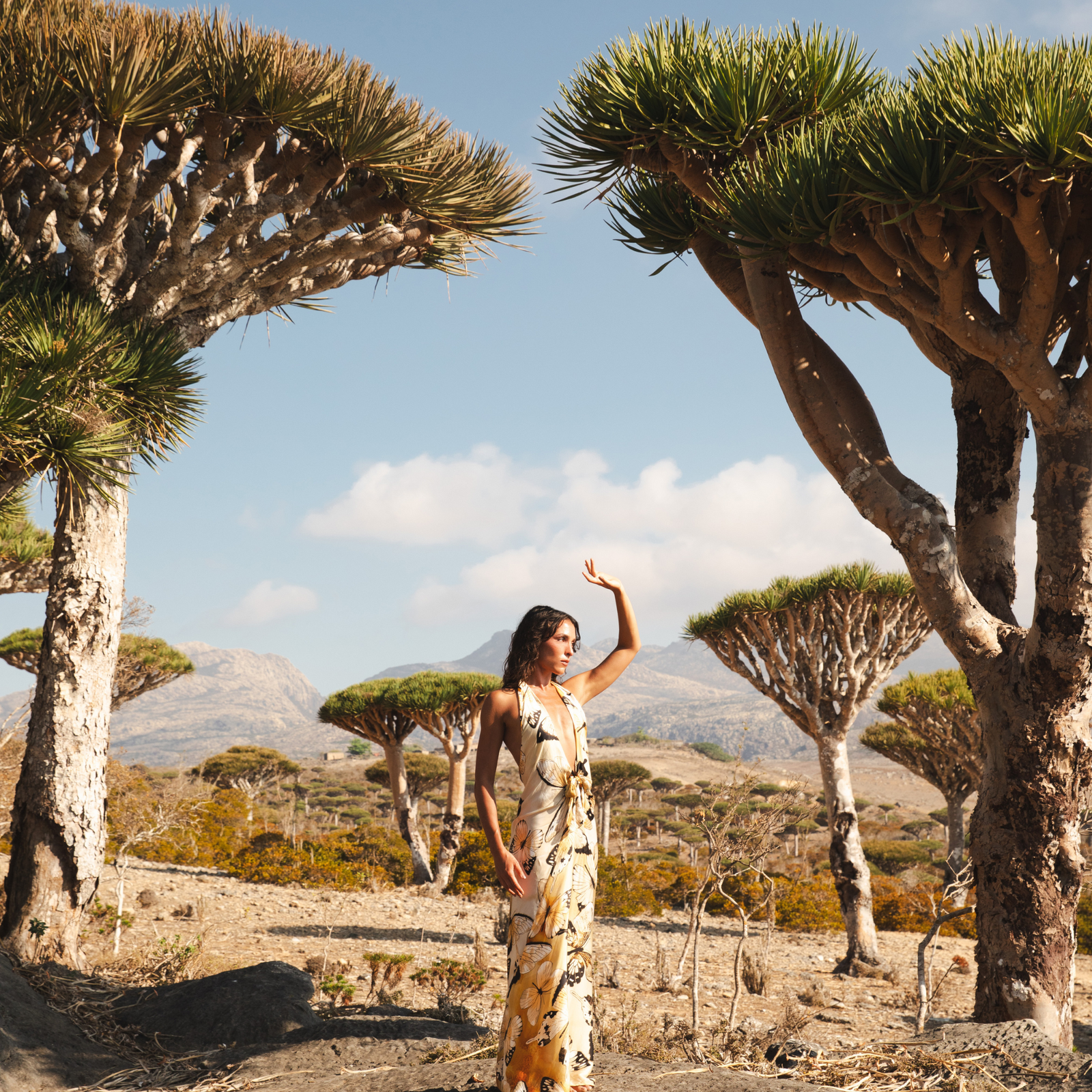 At FARA Boutique, fashion is an expression of spirit, a connection to the earth, and a celebration of timeless beauty. Our Nomadica Collection embodies these ideals, and what better place to capture its essence than the surreal landscapes of Socotra, Yemen? Often described as "a place from the dreams of Dalí or Dr Seuss," Socotra's unique beauty provided the perfect backdrop for our latest collection.